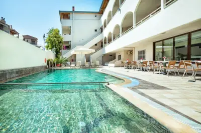 The Elinotel Polis Hotel is ideally located at a walking distance from the beach and the lively village centre of Hanioti, on the Halkidiki peninsula. There are a lot of hotels and inns, restaurants and traditional taverns that will satisfy every family. Water sports activities, scenic parks, boutiques will complete entertainment of any visitor and satisfy every taste. All theese make the village ideal for relaxing.