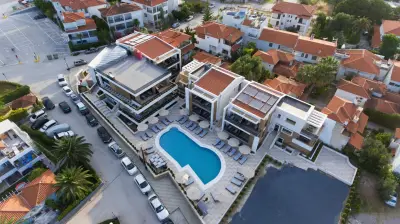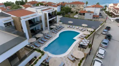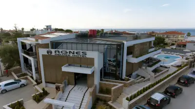 Agnes Deluxe Hotel is located in Pefkochori, Halkidiki, in a beautiful sea front location. It consists of 24 rooms, with 7 different room categories.