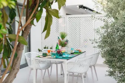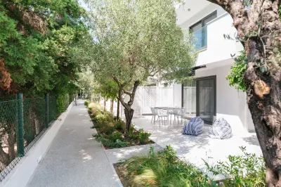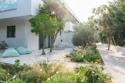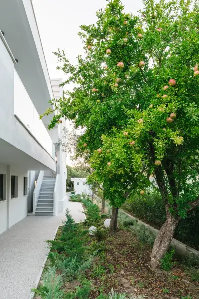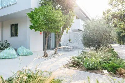 Mariya art living consists of eight fully furnished, self-catering apartments, in an innovative contemporary building. Surrounded by a lush garden with aromatic herbs, olive and citrus trees, you immediately experience the sense of relaxation, serenity and privacy. Just 60 meters away, you will find one of the most pristine and clear beaches of Îassandra.