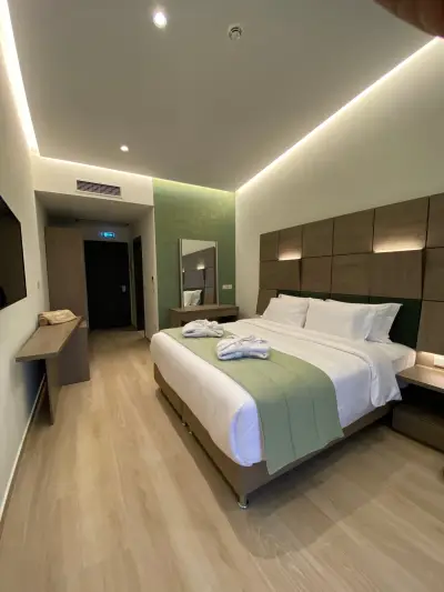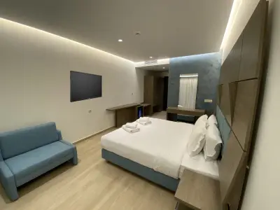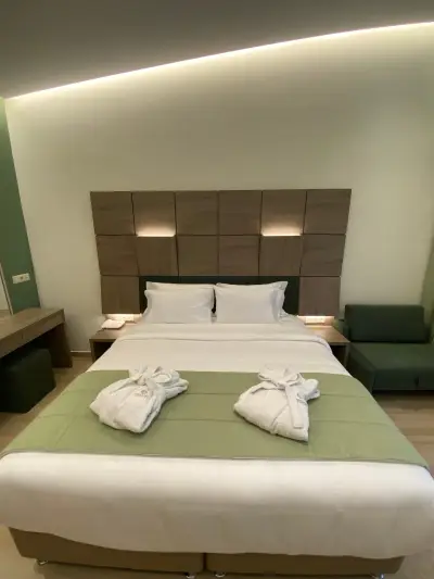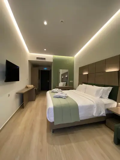 The main building of the hotel consists of three levels, in which the underground floor will be providing a 24h/7 guarded parking lot and also a luxurious wellness area. On the ground floor the front desk will be set up and next to you will find the lobby bar where drinks will be available. On the upper floor there will be an a la carte restaurant and the buffet where our guests can enjoy their meals. In the remaining of the complex all the rooms are situated around the swimming pool and the pool bar.