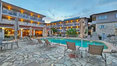 The 3-star hotel Sarantis located in the most popular resort of Kassandra peninsular, in Hanioti, Halkidiki.It has been renovated recently.