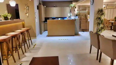 The hotel has a salt water pool with summer terrace with modern sunbeds and umbrellas, where guests can relax.Free Wi-Fi is provided in public areas and rooms.Parking space is normally available around the hotel in public roads.