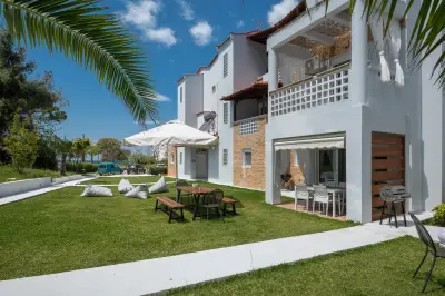 In the area one can also find the ancient temple of Poseidon (4th century B.C.) indicating the important role Possidi played during ancient times. Moreover, very close to the villas, guests can easily reach traditional fish taverns placed next to the sea whereas 20 kilometers away they can find Kallithea with its famous night life.