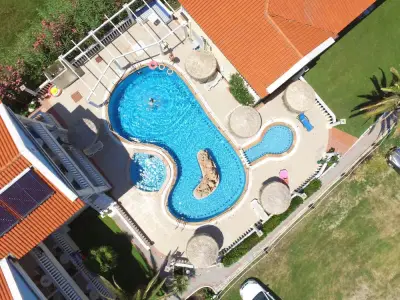 When you stay at Hotel Rigakis in Kassandra, you'll be on the beach, within a 5-minute drive of Pefkochori Pier and Chaniotis Beach. This beach aparthotel is 11.4 mi (18.4 km) from Kalithea Beach and 3.2 mi (5.2 km) from Pefkochori Lagoon. Make yourself at home in one of the 30 air-conditioned rooms featuring kitchenettes with refrigerators and stovetops. Flat-screen televisions are provided for your entertainment. Conveniences include safes, housekeeping is provided daily, and irons/ironing boards can be requested. Distances are displayed to the nearest 0.1 mile and kilometer. Pefkochori Pier - 0.6 km / 0.4 mi Chaniotis Beach - 2.2 km / 1.3 mi Pefkochori Lagoon - 5 km / 3.1 mi Port Glarokavos - 6.3 km / 3.9 mi Xenia Beach - 8.2 km / 5.1 mi Chroúsou Beach - 10.2 km / 6.4 mi Thermal Spa Agia Paraskevi - 10.5 km / 6.5 mi Avláki Beach - 11.2 km / 7 mi Loutra Agias Paraskevis Beach - 15.8 km / 9.8 mi Kalithea Beach - 18.4 km / 11.4 mi Temple of Ammon Zeus - 18.9 km / 11.7 mi Folklore Museum of Afitos - 21.2 km / 13.2 mi Varkes Beach - 22 km / 13.7 mi The preferred airport for Hotel Rigakis is Macedonia Airport (SKG) - 95.1 km / 59.1 mi Featured amenities include express check-in, express check-out, and luggage storage. Free self parking is available onsite. Take advantage of recreation opportunities such as an outdoor pool or take in the view from a terrace and a garden. Additional amenities at this aparthotel include complimentary wireless internet access and a picnic area. You can enjoy a meal at Restaurant serving the guests of Hotel Rigakis, or stop in at the snack bar/deli. Relax with your favorite drink at the bar/lounge or the poolside bar. Cooked-to-order breakfasts are available daily for a fee. You'll be asked to pay the following charges at the property: A tax is imposed by the city and collected at the property. This tax is adjusted seasonally and might not apply year round. Other exemptions or reductions might apply. For more details, please contact the property using the information on the reservation confirmation received after booking. A tax is imposed by the city: From 1 November - 29 February, EUR 0.50 per accommodation, per night A tax is imposed by the city: From 1 March - 31 October, EUR 1.50 per accommodation, per night We have included all charges provided to us by the property. Fee for cooked-to-order breakfast: approximately EUR 10 for adults and EUR 10 for childrenPet fee: EUR 10 per pet, per stayService animals are exempt from fees The above list may not be comprehensive. Fees and deposits may not include tax and are subject to change. Cash transactions at this property cannot exceed EUR 500, due to national regulations. For further details, please contact the property using information in the booking confirmation. Guests can arrange to bring pets by contacting the property directly, using the contact information on the booking confirmation (surcharges apply and can be found in the Fees section). The property is professionally cleaned.