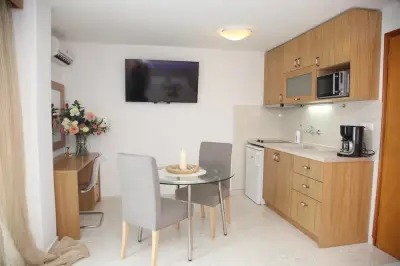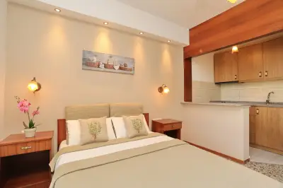 When you stay at Hotel Apartment Kastoria in Kassandra, you'll be connected to the convention center, within a 15-minute drive of Chaniotis Beach and Kalithea Beach. This aparthotel is 2.9 mi (4.7 km) from Pefkochori Pier and 5.6 mi (9 km) from Pefkochori Lagoon. Make yourself at home in one of the 18 air-conditioned rooms featuring kitchens. Rooms have private furnished balconies. Complimentary wireless internet access is available to keep you connected. Conveniences include safes and desks, and housekeeping is provided on a limited basis. Distances are displayed to the nearest 0.1 mile and kilometer. Chaniotis Beach - 0.6 km / 0.3 mi Pefkochori Pier - 4.8 km / 3 mi Pefkochori Lagoon - 9 km / 5.6 mi Port Glarokavos - 10.1 km / 6.2 mi Xenia Beach - 12 km / 7.5 mi Loutra Agias Paraskevis Beach - 13.9 km / 8.6 mi Chroúsou Beach - 14.1 km / 8.8 mi Kalithea Beach - 14.2 km / 8.9 mi Thermal Spa Agia Paraskevi - 14.3 km / 8.9 mi Temple of Ammon Zeus - 14.8 km / 9.2 mi Avláki Beach - 15.1 km / 9.4 mi Folklore Museum of Afitos - 17.1 km / 10.6 mi Varkes Beach - 17.9 km / 11.1 mi Siviri Beach - 23.3 km / 14.5 mi Possidi Cape - 24 km / 14.9 mi The preferred airport for Hotel Apartment Kastoria is Macedonia Airport (SKG) - 91 km / 56.6 mi Featured amenities include luggage storage, laundry facilities, and coffee/tea in a common area. Guests may use a roundtrip airport shuttle for a surcharge, and free self parking is available onsite. Take in the views from a terrace and a garden and make use of amenities such as complimentary wireless internet access. This aparthotel also features concierge services, a picnic area, and barbecue grills. Satisfy your appetite at the aparthotel's coffee shop/cafe, or stop in at the snack bar/deli. Quench your thirst with your favorite drink at the bar/lounge. Buffet breakfasts are available for a fee. You'll be asked to pay the following charges at the property: A tax is imposed by the city and collected at the property. This tax is adjusted seasonally and might not apply year round. Other exemptions or reductions might apply. For more details, please contact the property using the information on the reservation confirmation received after booking. A tax is imposed by the city: From 1 November - 29 February, EUR 0.50 per accommodation, per night A tax is imposed by the city: From 1 March - 31 October, EUR 1.50 per accommodation, per night We have included all charges provided to us by the property. Fee for buffet breakfast: approximately EUR 8 for adults and EUR 4 for childrenCrib (infant bed) fee: EUR 6.0 per day The above list may not be comprehensive. Fees and deposits may not include tax and are subject to change. Cash transactions at this property cannot exceed EUR 500, due to national regulations. For further details, please contact the property using information in the booking confirmation.