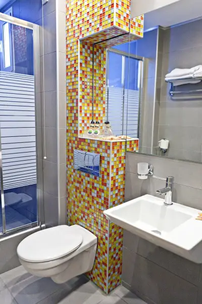 B) The 18 Superior rooms are spacious and stylishly decorated in 30 mï space with 2 beds and a couch and can offer accommodation for 2 to 3 persons. Except the facilities that all the rooms offer, superior are equipped with amenities and slippers.