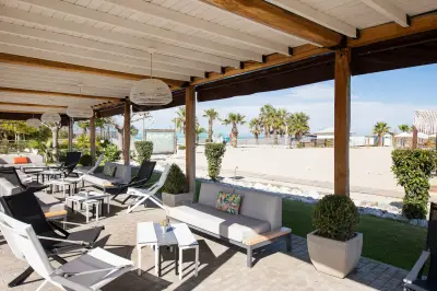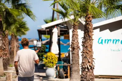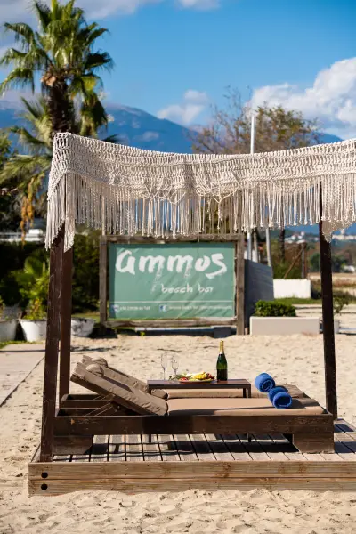Our beach bar âAmmosâ is just a breath from the sea with lots of sun beds and umbrellas in order to enjoy your coffee, drinks and cocktails.
