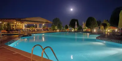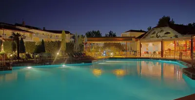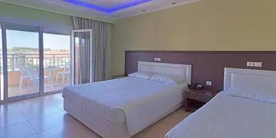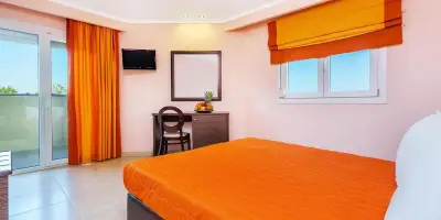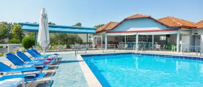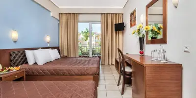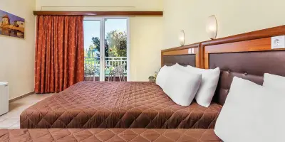 The hotel offers air-conditioned rooms with balcony, refrigerator, satellite television and free Wi-Fi. Guests can enjoy a swim in the large swimming pool and children's pool and sunbathe in a sun lounger whilst sipping a drink from the pool bar, and those arriving by car will appreciate the free on-site parking. Other hotel facilities include a mini market, a children's playground and an events hall, all for a wonderful holiday in Greece.