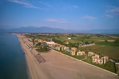 Built on the footsteps of the legendary Mountain Olympus and situated on the Olympus Riviera beach, Mediterranean Village Hotel & Spa, an ultramodern five star hotel exactly by the sea, offers a combination of high quality services, excellent accommodation and a great hospitality. The hotel is situated just 700m of the town of Paralia and at 7km distance from the city of Katerini.