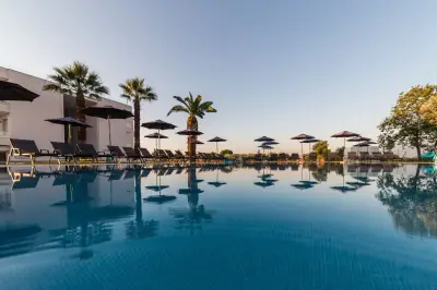 In the region of Pieria, below the mountain range of Olympus our hotel is settled, in Paralia Katerinis. Mythic Hotel is a four-star hotel situated in a verdant area of 12 acres. It is surrounded by lush vegetation (wild plants - roses - palm trees, etc.).