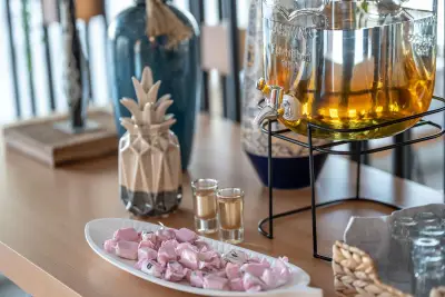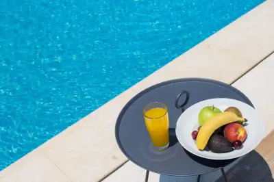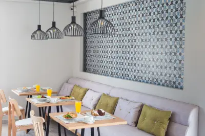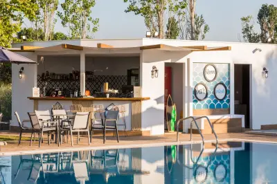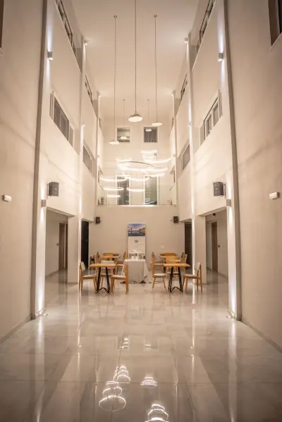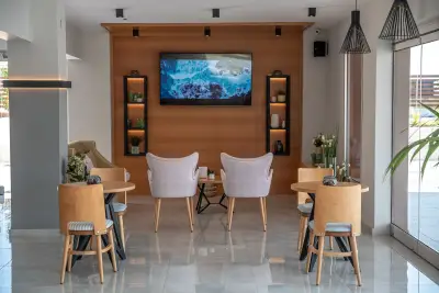 The buildingâs ground floor hosts the reception, the restaurant and bar. There is also a unique resting & quiet area, where a magnificent fountain dominates. On the ground floor are situated 10 comfortable suites with the private pools, two of those are deluxe. On the first and second floor there are specially designed rooms for families & standard double rooms.