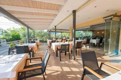 44 Rooms, Suites and Maisonettes, an Outdoor pool with separate Kids pool, Buffet restaurant, A la carte well known Taverna, a Pool Bar, Parking spaces, Elevator, Lushing Gardens, Beach, Conference Room (82 seats), Fitness & Wellness Center, Kids corner, Lobby/Lounge area ,Internet corner among impeccable services.