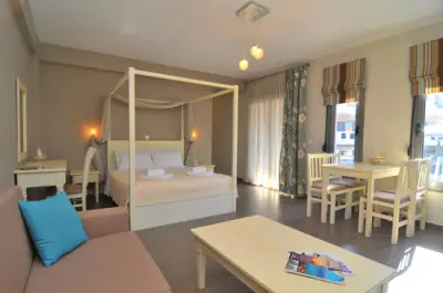 This charming hotel boasts a prime setting just 150 metres from the Golden Beach in Thasos, where the delightful scenery of the Aegean Sea can be taken in. Within a short distance, guests can explore the host of shopping, entertainment and dining venues of the area. The hotel greets guests with an attractive architectural style, resembling the elegance of the area. The guest rooms are spacious and endearing, offering modern furnishings and comfortable fabrics to induce restful slumber. The rooms feature modern amenities, catering to the needs of business and leisure travellers alike. Guests will appreciate the wide array of facilities the hotel has to offer, with something to meet the needs of every type of traveller.