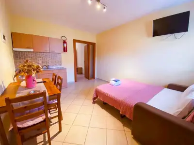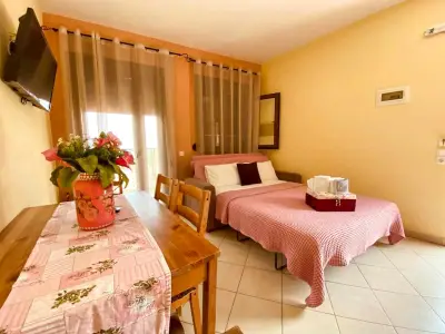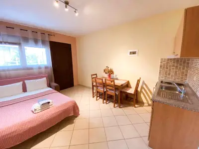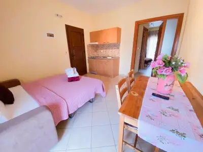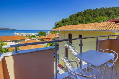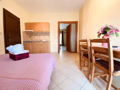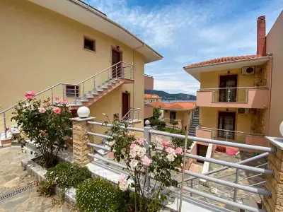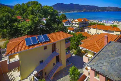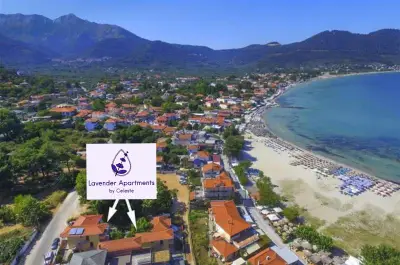 Lavender Apartments is a 3-building complex, located in the heart of the picturesque village of Skala Potamia, just 40m from the famous beach of Chrysi Akti-Golden Beach. Our accommodation consists of 8 one-bedroom apartments (2 of the buildings feature 3 apartments each and the 3rd building features 2 apartments â all apartments are accessible by stairs), fully equipped to cater to all of guestsâ needs. Around the accommodation youâll find multiple supermarkets, shops, taverns and cafes all in walking distance as well as a private parking.The One-Bedroom Apartments (ca. 45 m2) consist of a bedroom with a double bed, and in the other room (separated by door) there is the kitchenette, dining table and a sofa bed that turns into a double bed. All the apartments feature bathrooms with showers. The apartments have also a wardrobe, TV, air-condition, fully equipped kitchenette, mini fridge, welcome tray with coffee, sugar, honey, balcony or terrace with outdoor furniture, wi-fi, hairdryer, slippers, and all the necessary bathroom and room amenities. Cleaning on a daily basis. Towels are changed every second day and linen are change every 3rd day. Baby cot available on request.