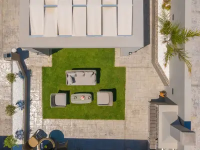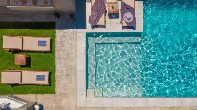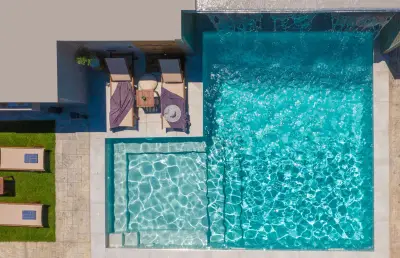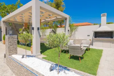 In the popular tourist resort of Alykes, a few minutes away from the sandy beach, one can find Rua Mat Villas, two identical, perfectly designed holiday homes with private swimming pools, that can accommodate up to 10 persons each. Begin this yearâs adventure with a luxurious accommodation on the most beautiful island of the Mediterranean!