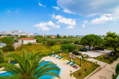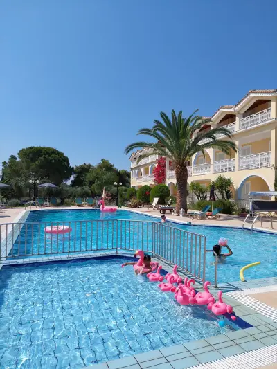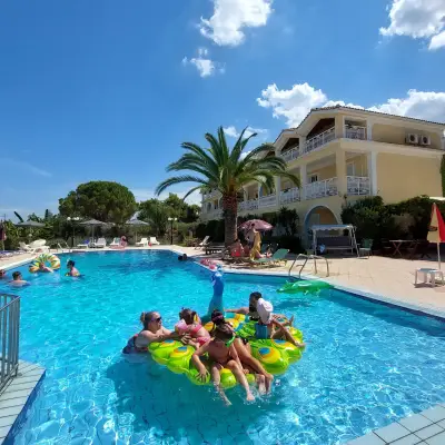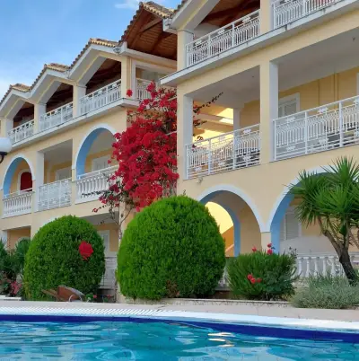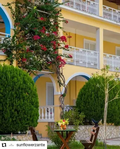 Sunflower Apartments & Studios is a family owned property that offers open handed hospitality. Surrounded by lush greenery, it is just a short walk from Laganas main street but still in a quiet location! It offers facilities such as a large swimming pool, snack bar, parking area and free Wifi. It is suitable for couples, families or group of friends. A wonderful place for your holidays which combines the best hospitality, unspoilt nature, a magnificent landscape and some of the most beautiful beaches of the Ionian Islands!