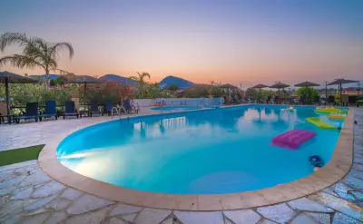 Built according to the style and colours of Ionian, set in beautiful gardens and greenery, next to the blue and clean beach.