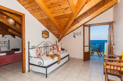 If you want vacations in Zakynthos by the sea, in a big estate (Biskinis estate since 1888) with 260 meters front to the sea, with a "private" - secluded beach, then "Kavos Psarou" is the right place for you. Is built with respect to the local architecture, reminding of old Zakynthian mansions.