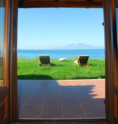 The owner's cottage is very close to the villa's comlplex and the owners (Biskinis family) are always willing to help you, to give you information and to offer their hospitality. The surrounding area is scenic, green and lush with olive groves, orchards and typical Mediterranean vegetation, there are nice to trails to walk with hills towards the inland and plenty of beautiful mostly sandy beaches with the crystal clear water of the Ionian sea in the nearby area. Just next to the villas there is a nice fishermen's port where you can anchor your boat for a small fee.