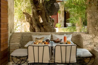 The warm colors, natural materials and hand made patina furniture provide a luxurious stay.