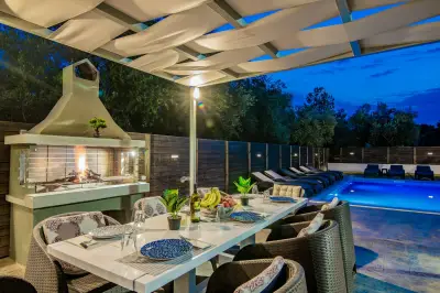 Ruvelis villa offers a sun terrace. Barbecue facilities are at guests' disposal and guests can also relax in the garden, beside the outdoor swimming pool, or in the shared lounge area.
