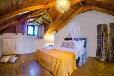 Joya Luxury Villas is a complex of two luxury villas fully furnished and equipped with an area of 200 m2, with one living room, one kitchen, two bathrooms, three bedrooms and a loft. In addition, there is a comfortable outdoor living/dining area with a barbecue grill in the spacious lush garden, that can offer you many relaxing nights. One Villa can accomodate up to 10 persons.