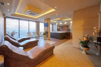 Термална зона със турска баня - хамам, сауна, джакузи, приключенски душ, парна баня, разнообразни процедури за лице и тяло, терапии, масажи, козметични процедури.
