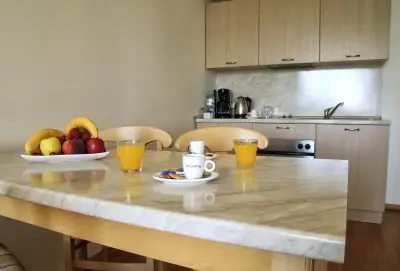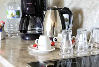 За удобството на нашите гости, предлагаме удобни шезлонги и чадъри около басейна, за да можете да се отпуснете и насладите на слънцето или да се насладите на хлад под сянката на чадърите. Басейнът ни е идеално място за отдих и забавление през летните месеци, където може да се насладите на освежаващи напитки в уютна атмосфера.