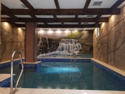 финландска сауна, солна сауна, масажно студио, вътрешен басейн с джакузи и температура на водата над 32 °C, инфрачервена сауна, парна баня, отопляема зона за релакс