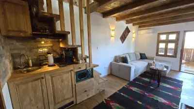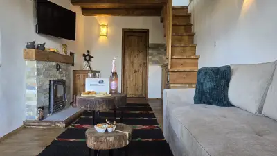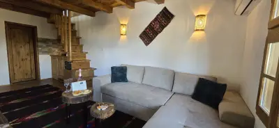 - Чардак, оборудван с място за сядане и барбекю на дървени въглища; Дневна с голям разтегателен диван и холна маса; Камина; Климатик; Смарт телевизор; напълно оборудван кухненски бокс; Баня и тоалетна; Вътрешна стълба към втори етаж.