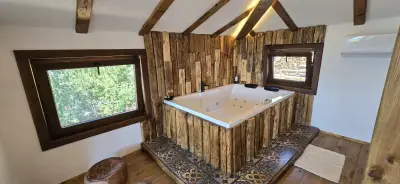 - Хидромасажна вана в типичния за вилите стил, от която се открива гледка към Пирин;