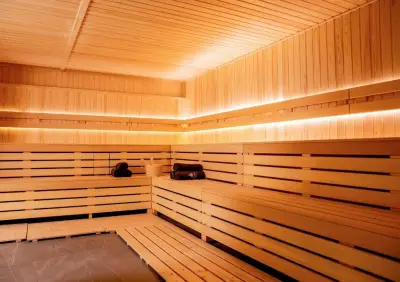 Вътрешен басейн с минерална вода, Голямо външно джакузи, био-сауна, ароматна парна баня, зона за релакс, хидромасажна вана, вана на Клеопатра, масажни кабинети, двоен масажен кабинет.
