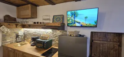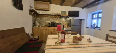 ВИЛА ПАНОРАМА 3 е напълно автентична каменна къща на два етажа. На първи етаж има механа с напълно обзаведена кухня с всички уреди и посуда, отворена камина, климатик и Смарт телевизор.