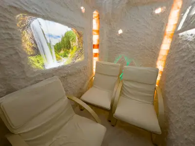 Открит басейн, сауна, солна стая, релакс зона, вътрешен басейн, парна баня, масажно студио и