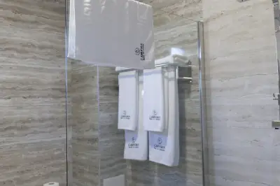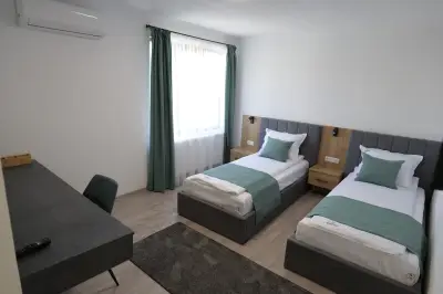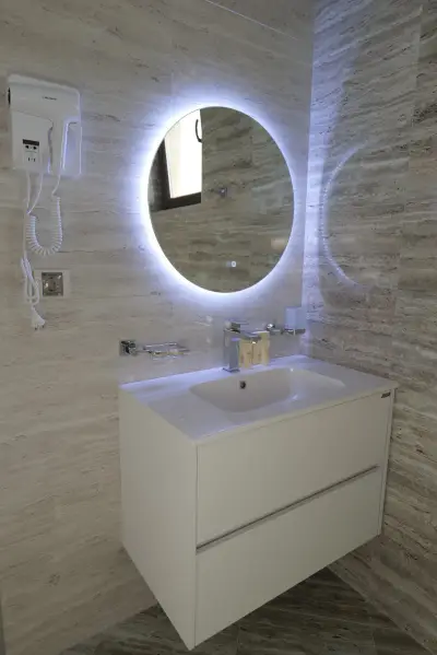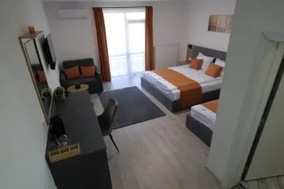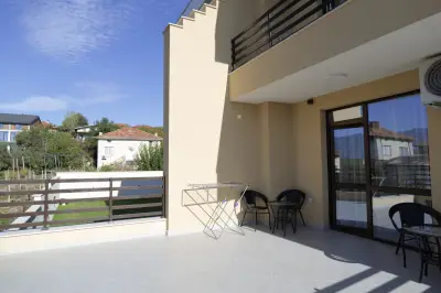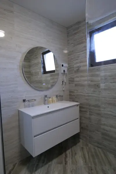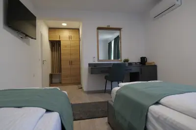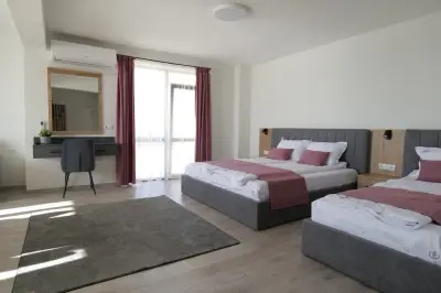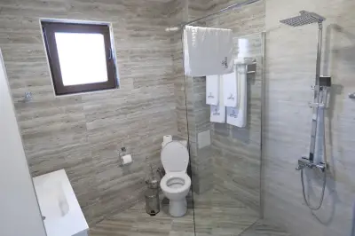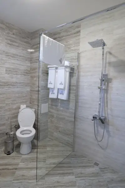 • Двойна стая с тераса - спалня, работно пространство, хладилник, електрическа кана за вода, тераса, гардероб, баня с душ кабина, сешоар, хавлиени кърпи и халати, чехли и тоалетни принадлежности, LED HD телевизор, wi-fi и климатик.