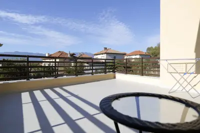 • Частно барбекю / трапезария, барбекю, кухненски бокс оборудван с всички необходими уреди, кафе машина с кафе, ютия, телевизор с плосък екран, климатик