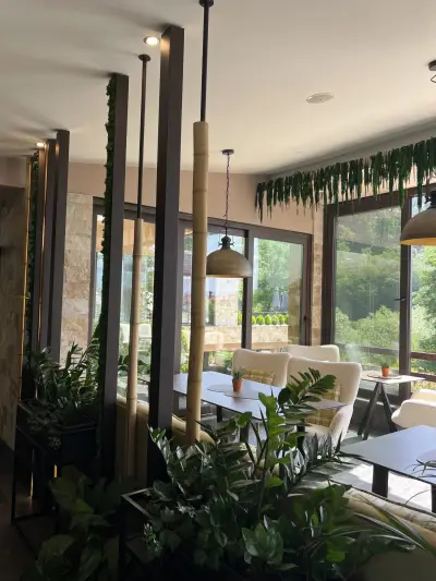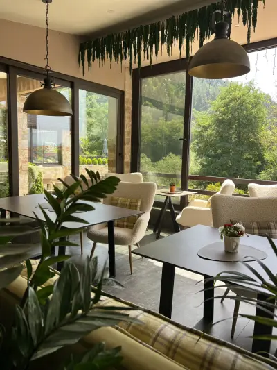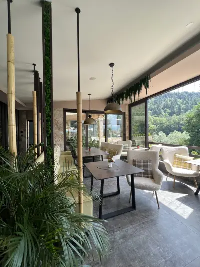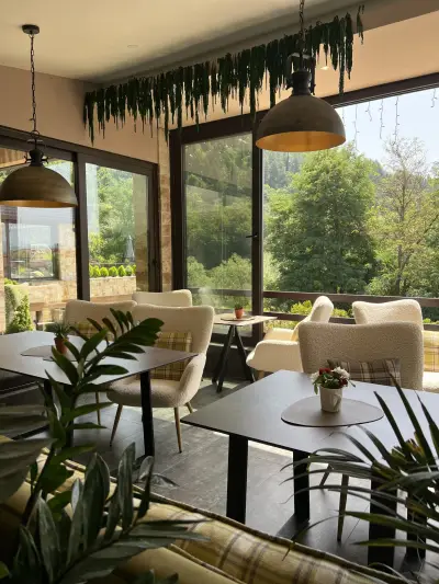 Ресторантът е уютен с просторна градина, перфектно обслужване, прекрасна кухня, качествени вина и напитки. От Панорама Бар можете да се насладите на прекрасна гледка към Пирин и Родопа планина.