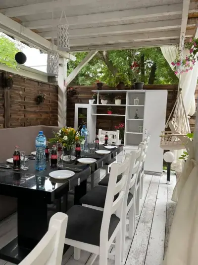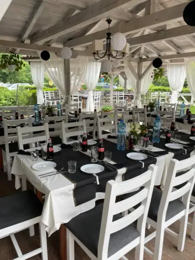 Предлагаме вкусни ястия и специалитети, акцентирани върху европейската и средиземноморска кухня, вълшебни мигове, прекрасно настроение и неповторима атмосфера, в ресторанта и откритата ни градина. Разполагаме с паркинг, детски кът - външен и вътрешен, два салона (500 места през зимния сезон и 700 места през лятото), градина, жива музика и ди джей.