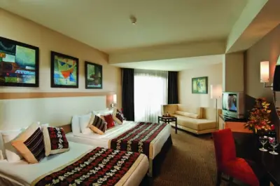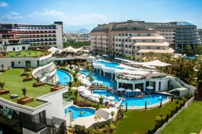 Оновен ресторант, 5 а - ла - карт ресторанта (с предварителна резервация), дискотека, 11 бара, 3 открити и 1 закрит басейн, водни пързалки, амфитеатър, магазини, СПА център, 4конферентни зали, паркинг. За децата: 3 детски басейна, водни пързалки, детска площадка, мини клуб (4–12 г.), аквапарк. Безплатни услуги: турска баня, парна баня, сауна, джакузи, фитнес, аеробика, водна гимнастика, дартс, тенис на маса, 3 тенис корта, баскетбол, плажен волейбол, мини футбол, анимация, интернет (на лоби бар). Платени услуги: масаж, солариум, билярд, боулинг, козметичен салон, търговски център, водни спортове, интернет кафе. ПЛАЖ: Собствен, пясъчен. Чадъри, шезлонги и матраци на плажа и при басейна – безплатно.