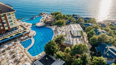 Основен ресторант, 3 а-ла-карт ресторанта (италиански, турски, рибен – срещу допълнително заплащане), 3 снек ресторанта - възможност за приготвяне на специални ястия за гости с алергии, 8 бара, сладкарница, 5 открити басейна, вътрешен отопляем басейн, аквапарк с 8 пързалки, фитнес, СПА център, магазини, 3 конферентни зали с оборудване, Wi-fi интернет – според концепцията на хотела.